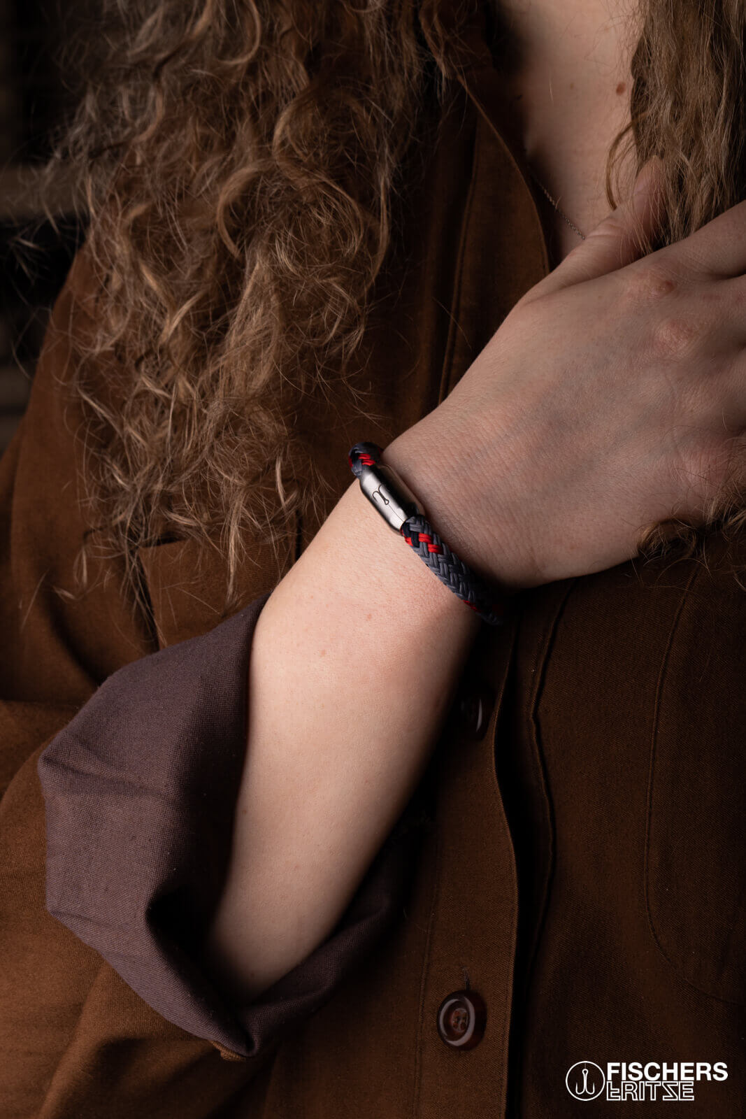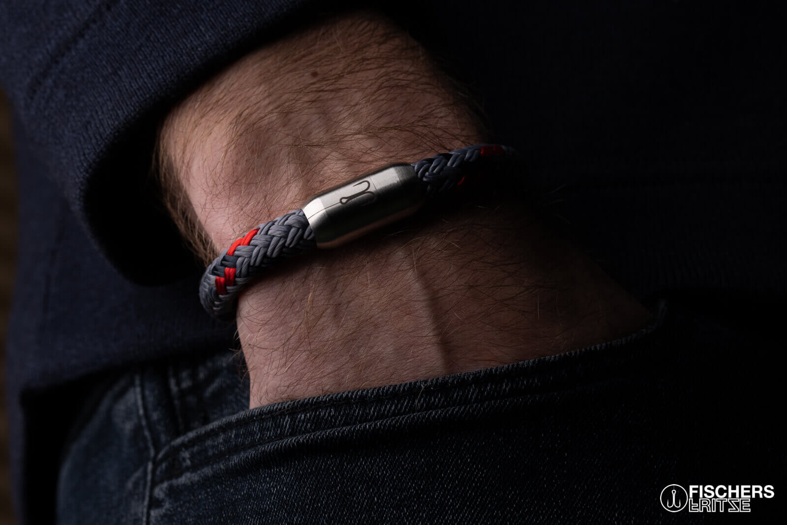Stainless steel meets sailing rope. The Mackerel "EDGAR" in gray, red, navy blue. Uncompromising, stable in a maritime look. sailing rope paired with an encapsulated stainless steel magnetic closure - developed & designed by Fischers Fritze®.